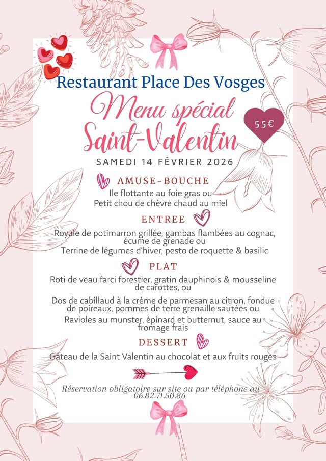 Venez célébrer la Saint Valentin le 14/02/2026 à partir de 19h avec votre amoureux(se) dans une ambiance conviviale et chaleureuse où vous pourrez déguster une cuisine raffinée et goûteuse réalisée 100% maison par notre Cheffe Laure et son équipe